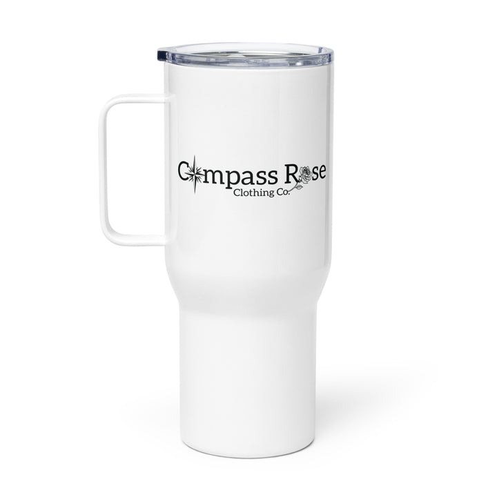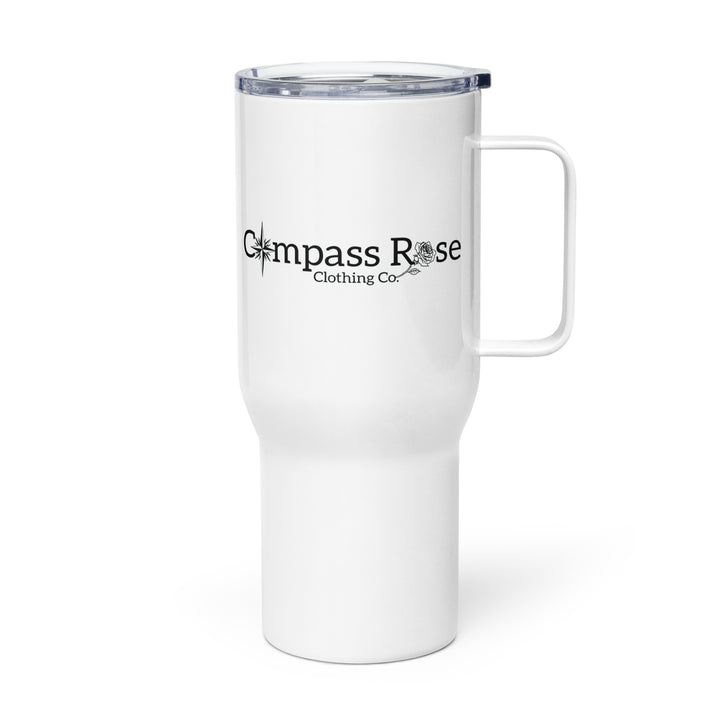 Elevate your sipping experience with the Compass Rose Clothing Travel Mug with Handle.