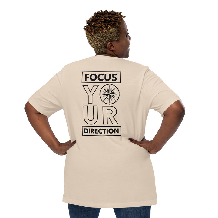 Elevate your wardrobe and uplift your spirit with the "Focus Your Direction" Unisex T-Shirt from Compass Rose Clothing Co.