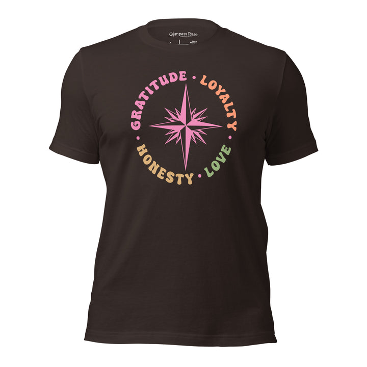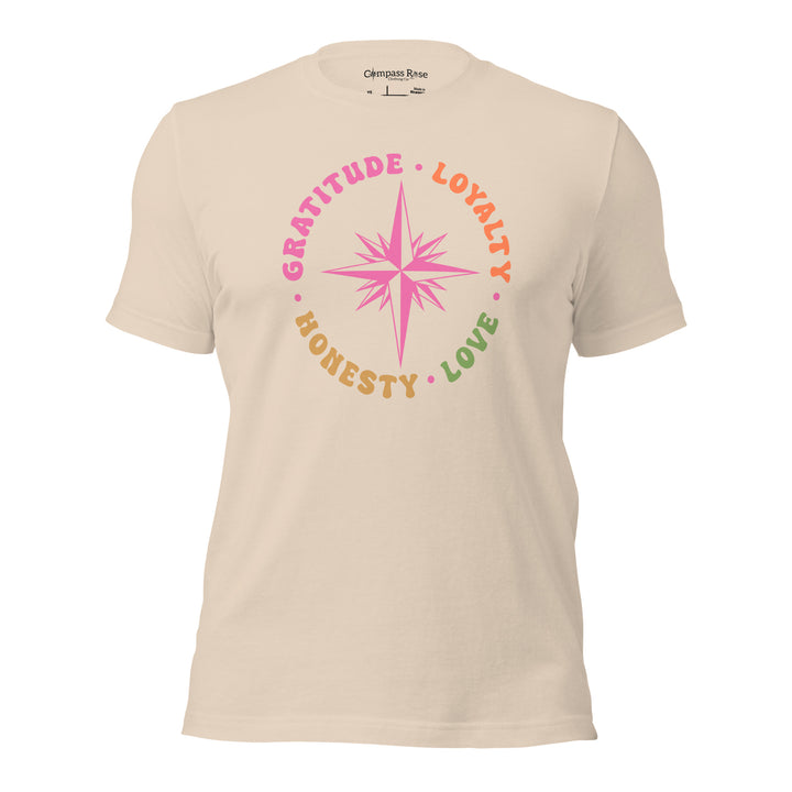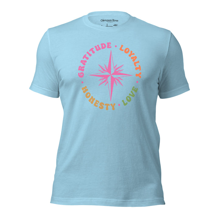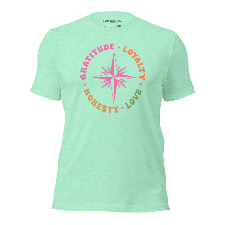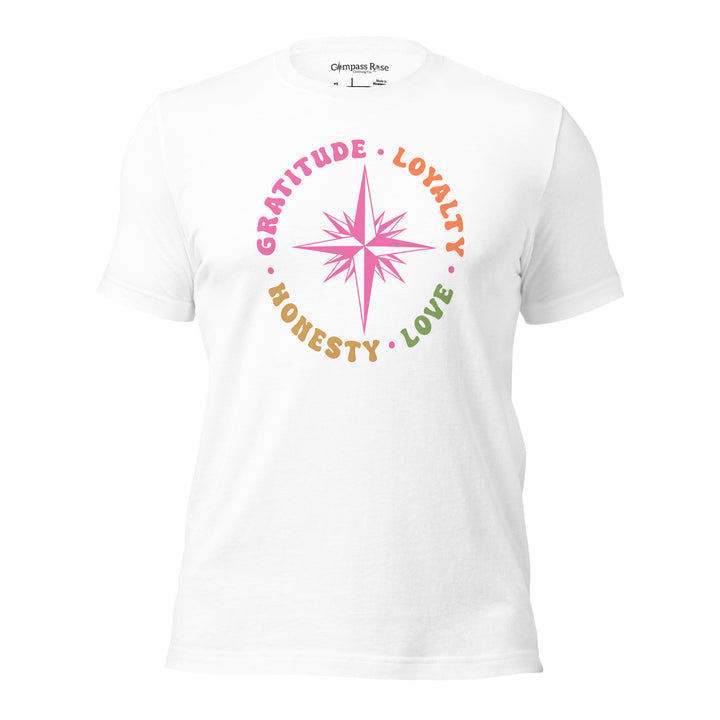 Discover the essence of meaningful living with the Gratitude Loyalty Honesty and Love from Compass Rose Clothing Co.