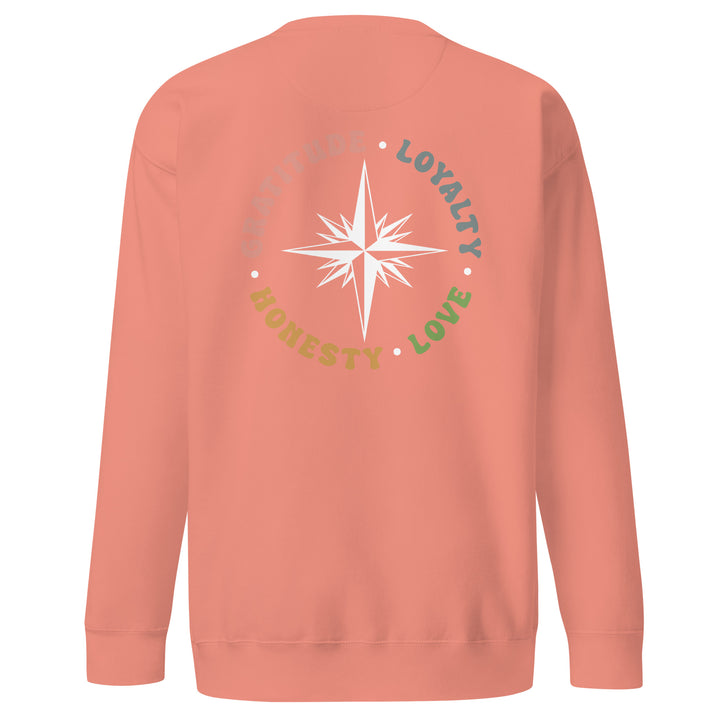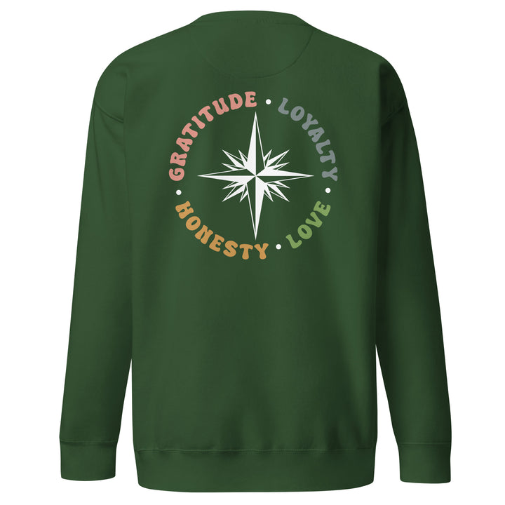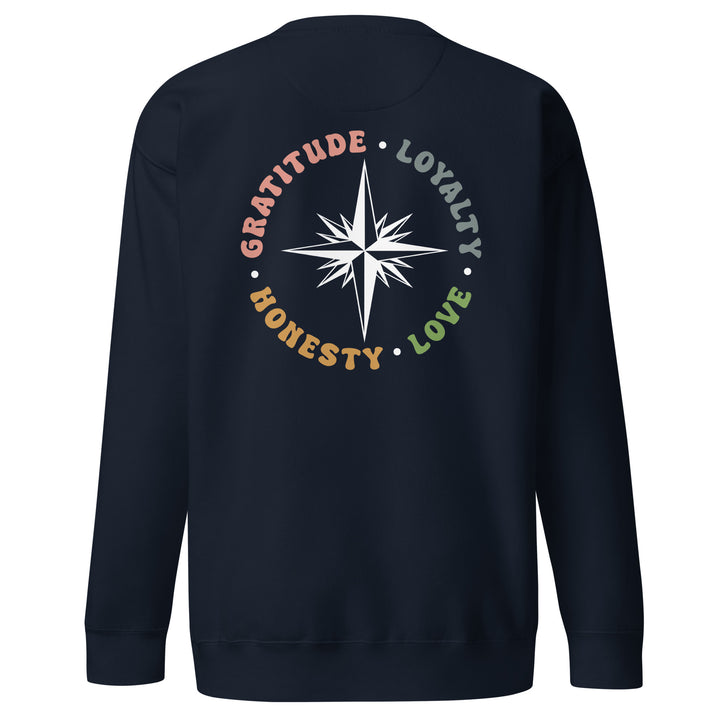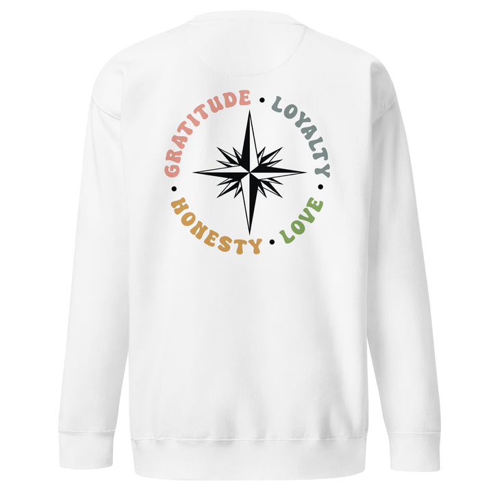 Experience the perfect blend of comfort and style with our "Gratitude Loyalty Love and Honesty" unisex premium sweatshirt from Compass Rose Clothing Co. Embrace the qualities that guide you on your unique journey with this versatile and inspirational piece.